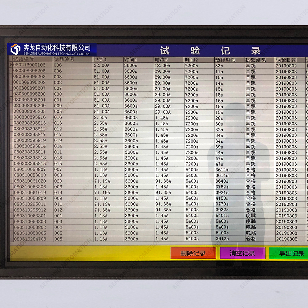 间隔时间可任意设定、参数任意配方、自动统计合格率、试验总数量、合格品数量、不合格品数量、OEE数据分析、压力自动监测、故障报警类型、故障报警历史记录、