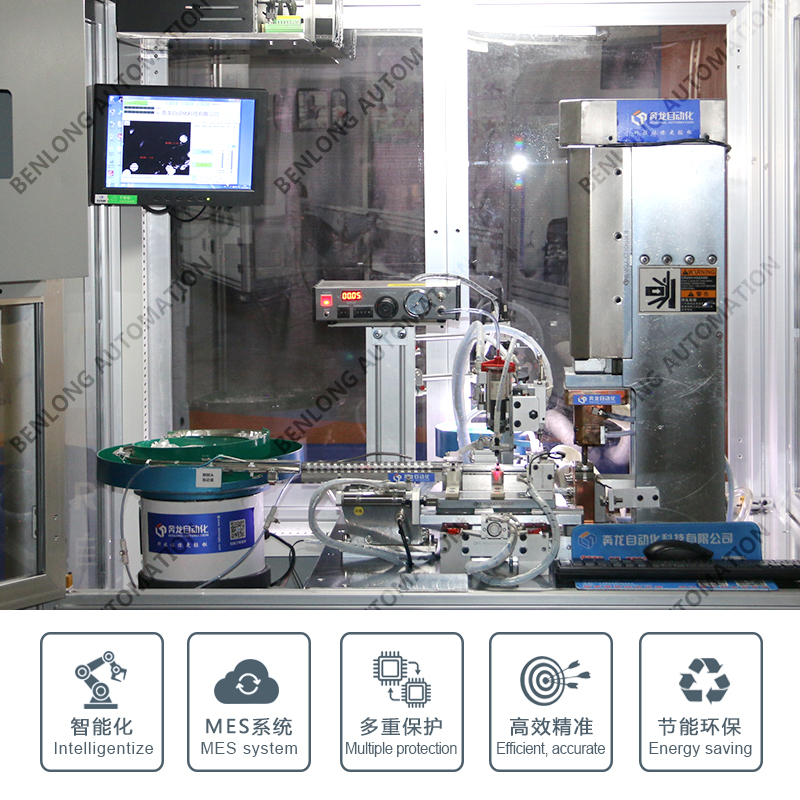 具有静触头供料、加注助焊剂、银点供料、CCD检测、自动焊接、自动下料、不良品区分、缺料报警、焊接参数值任意设定、自动摆盘/计数、装袋、包装、机器人码垛、