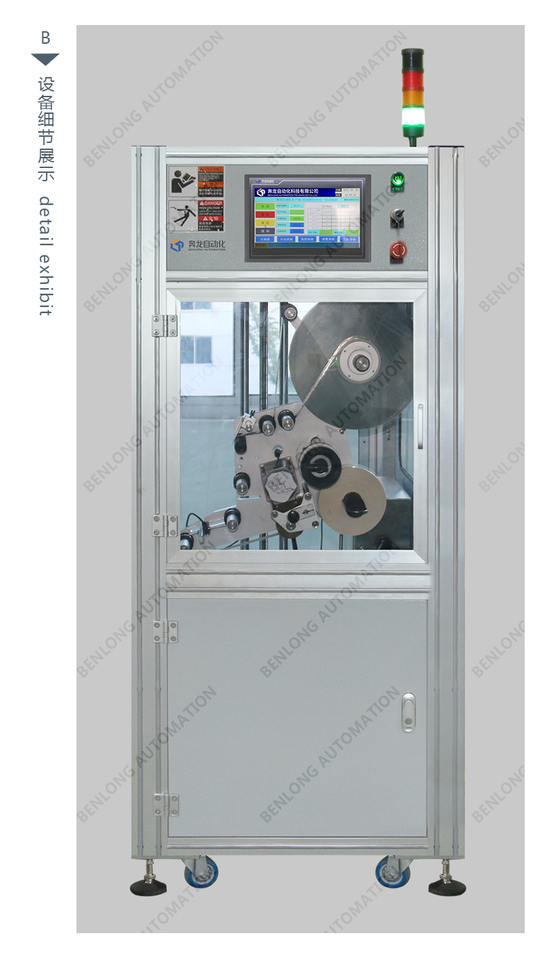 具有自动贴标(二维码标签、条形码标签、ID码标签、图案等)、CCD检测、不良品区分、缺料报警、竖立翻转水平、水平翻转竖立等工序的在线监测、